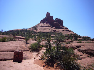 先生とは、今までに付き合った男性についておしゃべりしました。先生は10歳でAmericaに移住した為、付き合ったのは分かりませんが、結婚したのはAmerica男性ばかり3人です。3度目の結婚で30年近く連れ添っていて、このまま永遠に一緒です。私は今にして思うと、今までは結婚というより恋愛をしたかったんだな~って思います。まさに、自分の中に湧き上がるpassionを優先して、動いていた。相手の男性から受けるpassionを受け付けて、交際する。でも少しすると、もっと“私が”燃え上がれる男性との出会いを探し、追いかけてget。しばらくすると、あ~やっぱり男性のほうが私よりも情熱的な方が安らげるから、私を追いかけて来た男性と交際する。また時が経つと・・・以降繰り返し。今は、結婚に求めるものがはっきりしているし、男性を見るポイントが変わった、ということを話しました。先生は、America男性は強い、男らしい(あくまで先生と付き合った又は、結婚した男性)とのこと。さて、もうBell rockに着きました。Hikingしてふもとに着き、rock climbing。先生はふくらはぎまであるsuedeのマウンテンブーツをはいていますが、私はスニーカーなので以外に滑りやすいです。山肌はなめらかでツルツルした感じなので。両手・両足で4足歩行(?)で這ってrock climbingする場面も多々あります。3分の1登った辺りで、先生は「私はもう年だから、ここで休憩してるから、一人で登っておいで。」、と私一人で登ることになりました。もちろん、少し前まではトップまで何度も登ったことがあるとのこと。こんな本格的rock climbingは生まれて初めてです!この旅行はエキサイティングな初体験が山盛り!進んでいくと、私の前方に3人で登っている人たちに追いついて、ビックリ。その内の2人は見る限り70歳を過ぎた老夫婦です。あと、その息子です。私と同じ位置に居る、おばあさんは鋭い段差を登った2人から励まされて、勢い良くよじ登ってクリア!それを見た私も、気合を入れて一息に段差をとじ登りました。ふ~っ。